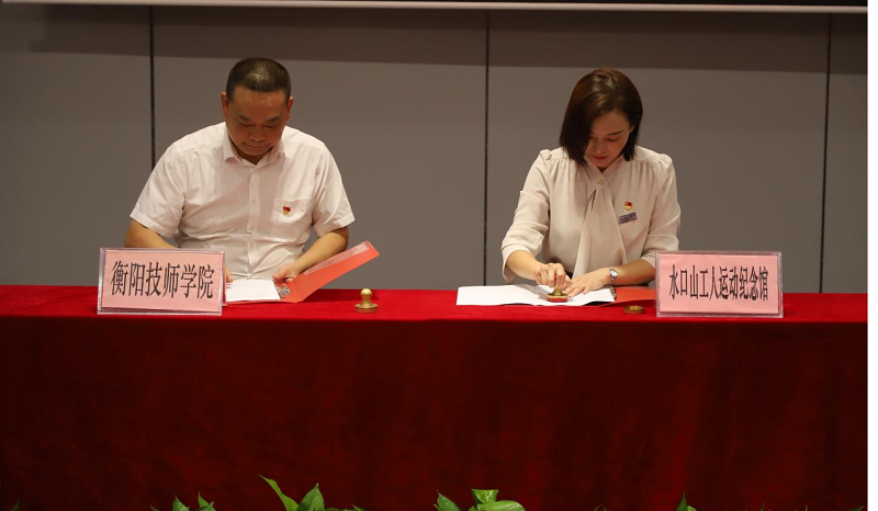 9月23日,衡陽技師學(xué)院與常寧市水口山工人運動紀(jì)念館在館內(nèi)舉行共建思政課實踐教學(xué)基地簽約授牌儀式。衡陽技師學(xué)院黨委書記肖春林,黨委副書記、院長廖與飛,常寧市委書記吳樂勝,常寧市委副書記、市長羅衛(wèi)華,常寧市委副書記、統(tǒng)戰(zhàn)部部長鄒雄杰等領(lǐng)導(dǎo)出席,羅衛(wèi)華主持儀式。