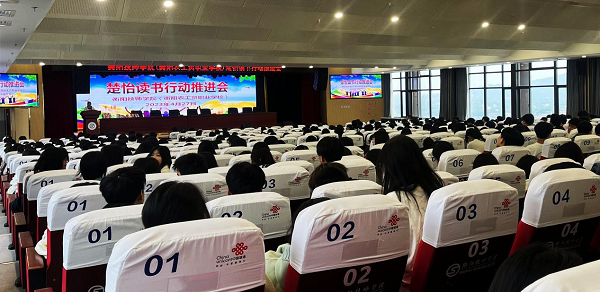 會議現場,學生代表李榮香分享個人讀書心得,來自信息工程學院學生周姬婉、智能制造學院學生鐘青鳳現場帶來了《書籍是人類進步的階梯》《來吧,楚怡讀書行動》朗誦表演。衡陽市新華書店在現場開展了贈書活動。隨后,師生們走進學院新圖書館,一起徜徉在書海里,讓濃郁的書香洋溢校園。