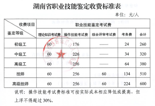 根據(jù)(湘人社規(guī)[2024] 3號(hào))文件精神,我院職業(yè)技能等級(jí)認(rèn)定收費(fèi)按以下標(biāo)準(zhǔn)收取。