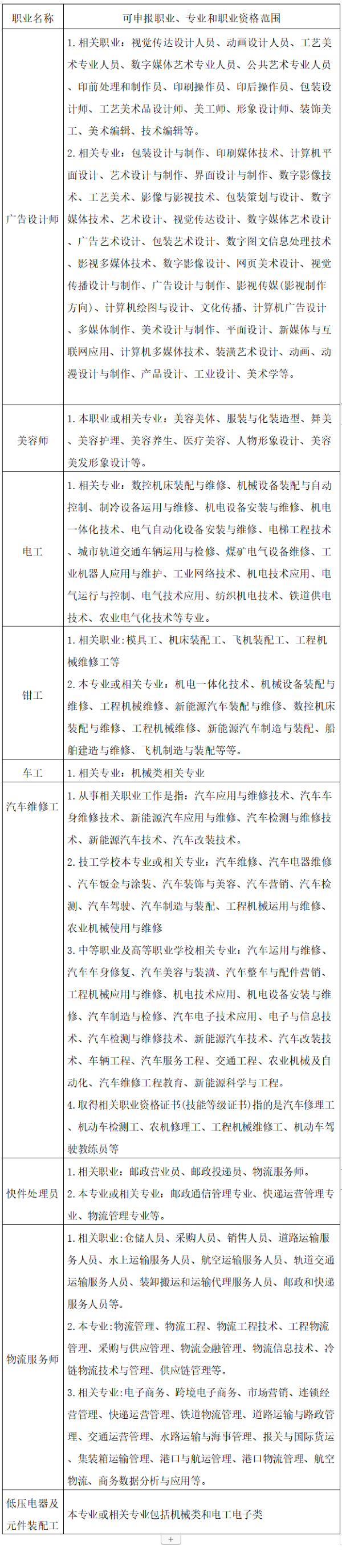 (五)可申報(bào)職業(yè)、專業(yè)和職業(yè)資格范圍