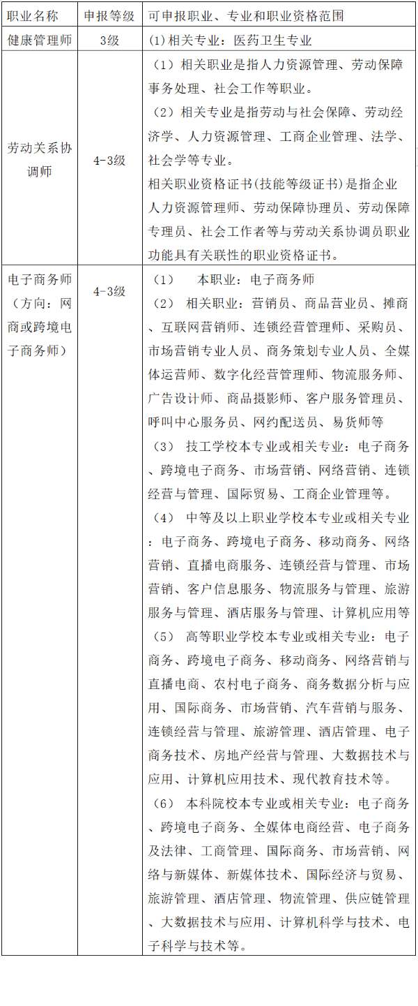 (四)可申報職業(yè)、專業(yè)和職業(yè)資格范圍