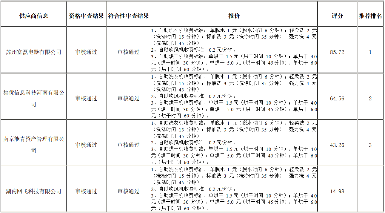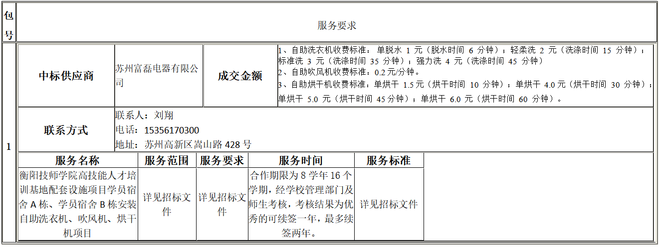 衡陽技師學院高技能人才培訓基地配套設施項目學員宿舍A棟、學員宿舍B棟安裝自助洗衣機、吹風機、烘干機項目公開招標采購于2024年07月03日結束,現將中標(成交)結果公告如下: