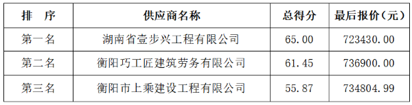成交供應商:湖南省壹步興工程有限公司