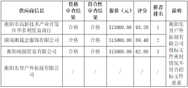 衡陽技師學院2024級新生軍訓服裝采購項目(第二次)于2024年7月12日結束,現將中標(成交)結果公告如下: