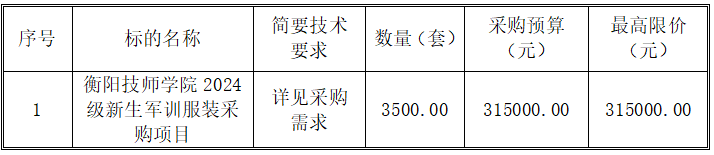 采購項目名稱:衡陽技師學院2024級新生軍訓服裝采購項目(第二次)