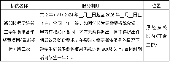 項(xiàng)目名稱:衡陽(yáng)技師學(xué)院第二學(xué)生食堂合作經(jīng)營(yíng)項(xiàng)目(重新招標(biāo))第二次