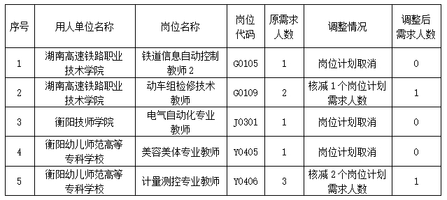 2025年度衡陽市市屬高職院校高層次和急需緊缺專業技術人才引進崗位調整目錄