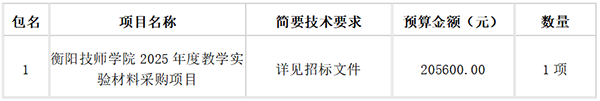 湖南省招標有限責任公司采購代理機構受衡陽技師學院的委托,對衡陽技師學院2025年度教學實驗材料采購項目(委托代理編號:0623-2575N3624015)進行公開招標采購。歡迎符合資格條件的投標人前來投標。
