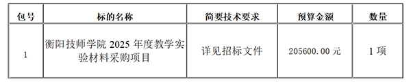 采購項目名稱:衡陽技師學(xué)院2025年度教學(xué)實驗材料采購項目