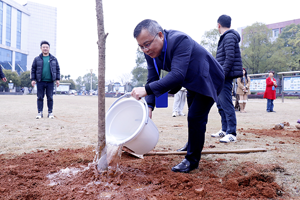 春風催新綠,植樹正當時。在第47個植樹節(jié)來臨之際,3月12日下午,學院機關(guān)第一黨支部組織開展2025年義務(wù)植樹活動。學院黨委書記肖春林與黨員同志、志愿者、師生代表共同參與義務(wù)植樹活動,以植樹護綠的實際行動踐行生態(tài)文明理念,為校園增添綠色生機。