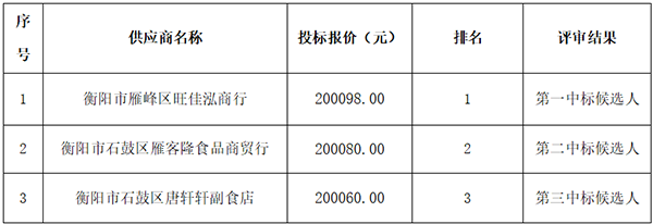 包3:衡陽技師學院4號商店合作經(jīng)營項目評標情況:
