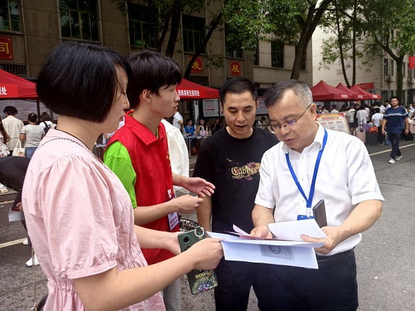 “家長,您好!資料復(fù)印好了,您拿好。”機(jī)關(guān)第一黨支部黨員志愿者羅振南正在為新生及家長免費(fèi)復(fù)印入學(xué)報(bào)到資料。這是學(xué)院黨員教師發(fā)揮先鋒模范作用助力迎新工作的縮影。