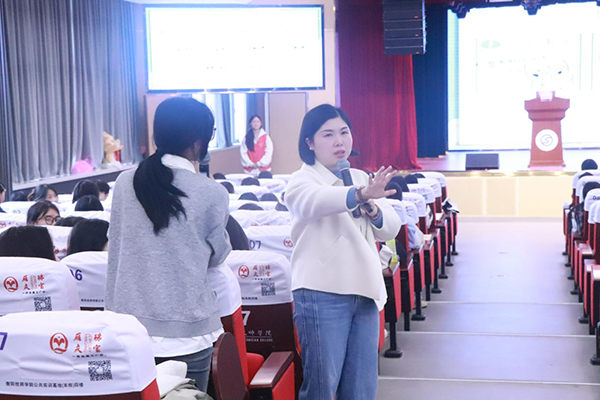 王夢怡以“探索自我 愛力覺醒”為主題,結(jié)合女生成長階段的心理特征,通過真實(shí)案例解析、互動問答等方式,講述了學(xué)業(yè)壓力、人際關(guān)系、情緒管理等常見問題。她圍繞未來職業(yè)發(fā)展中可能面臨的心理挑戰(zhàn),介紹了“非暴力溝通四部曲”“愛的動態(tài)平衡法則”等實(shí)用技巧,并帶領(lǐng)學(xué)生進(jìn)行正念冥想練習(xí),幫助大家掌握有效的心理疏導(dǎo)方法。同學(xué)們積極參與互動問答,現(xiàn)場氣氛熱烈。
