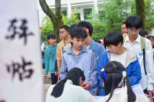 活動當天,該系從“愛、優文學”早讀內容中精心挑出300個謎語(社會主義核心價值觀20個,習近平金句30個,聲律啟蒙50個,三字經100個,唐詩三百首100個)懸掛在燈籠下方,由工作人員身著漢服進行引導,各班學生手持拜帖方可入場進行猜謎答題,帶給大家視覺盛宴的同時,提升了參與者的體驗感和儀式感,營造出濃厚的民族節日氛圍。活動規則為答對即可抽獎,中獎率為100%,猜出謎面個數越多,獎勵越多,積分越高。活動現場,學生們熱情洋溢,躍躍欲試,經過持續3個小時的競猜,最終,17廣告技師班鄭小榮、18廣告高技2班周濤、湯佳分別奪得狀元、榜眼、探花稱號,其中18廣告高技2班累計答題數目最多,獲得“翰林學府”獎項。
