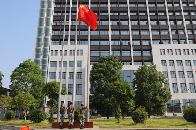 伴隨著雄壯的國歌聲,鮮艷的五星紅旗冉冉升起,迎風飄揚。全員莊嚴肅立,2021級新生軍訓總結表彰大會暨開學典禮隨之拉開序幕。隨后3000 余名新生進行分列式表演,接受檢閱,整齊的隊列,飽滿的精神,展示了2021級新生的生機與活力,令人振奮,給人以力量和希望。