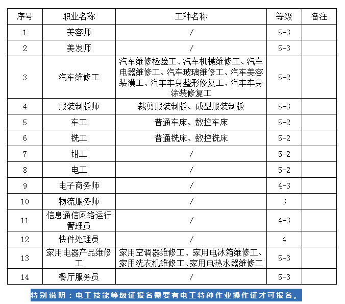 A類:汽車維修工、車工、銑工、鉗工、電工、家用電器產品維修工