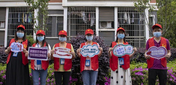 本網(wǎng)訊 2022年4月12日,信息與生物技術(shù)系黨總支積極響應(yīng)學(xué)院疫情防控工作相關(guān)要求,結(jié)合系部專業(yè)特點組織開展疫情防控志愿服務(wù)活動。志愿者們手持志愿者和廣告設(shè)計專業(yè)學(xué)生手繪的宣傳標語牌,站在教學(xué)樓前、宿舍、校園超市、食堂這些志愿服務(wù)崗值班,進行文明勸導(dǎo)、宣傳疫情防控知識,成為校園中一道靚麗的風(fēng)景線。
