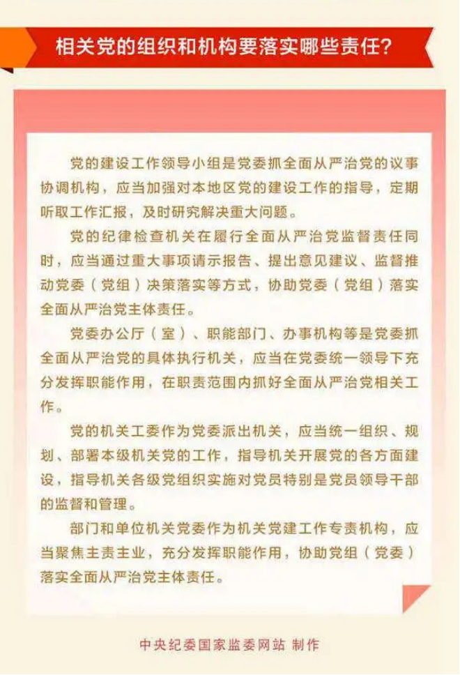 圖解:落實全面從嚴治黨主體責任有哪些內容——相關黨的組織和機構要落實哪些責任?