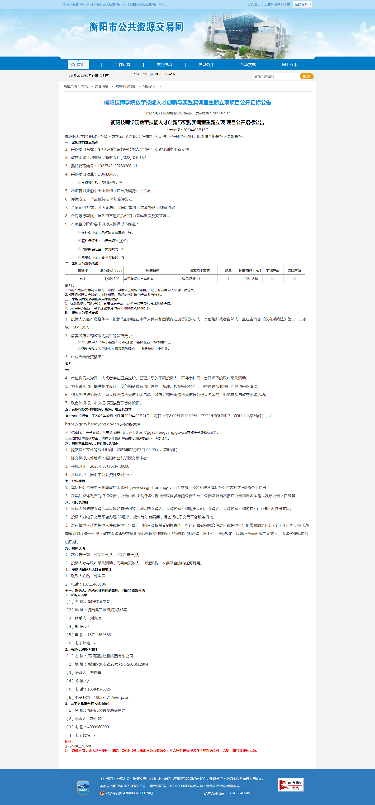 衡陽技師學(xué)院數(shù)字技能人才創(chuàng)新與實(shí)踐實(shí)訓(xùn)室重新立項(xiàng)項(xiàng)目公開招標(biāo)公告