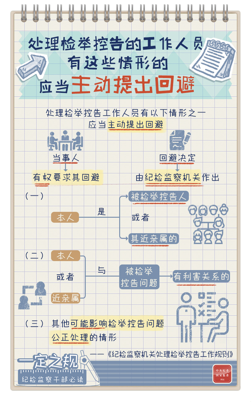 第四十八條 處理檢舉控告工作人員有以下情形之一,應(yīng)當(dāng)主動(dòng)提出回避,當(dāng)事人有權(quán)要求其回避,回避決定由紀(jì)檢監(jiān)察機(jī)關(guān)作出: