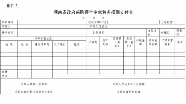 2、湖南省政府采購項目評審專家勞務(wù)報酬支付表