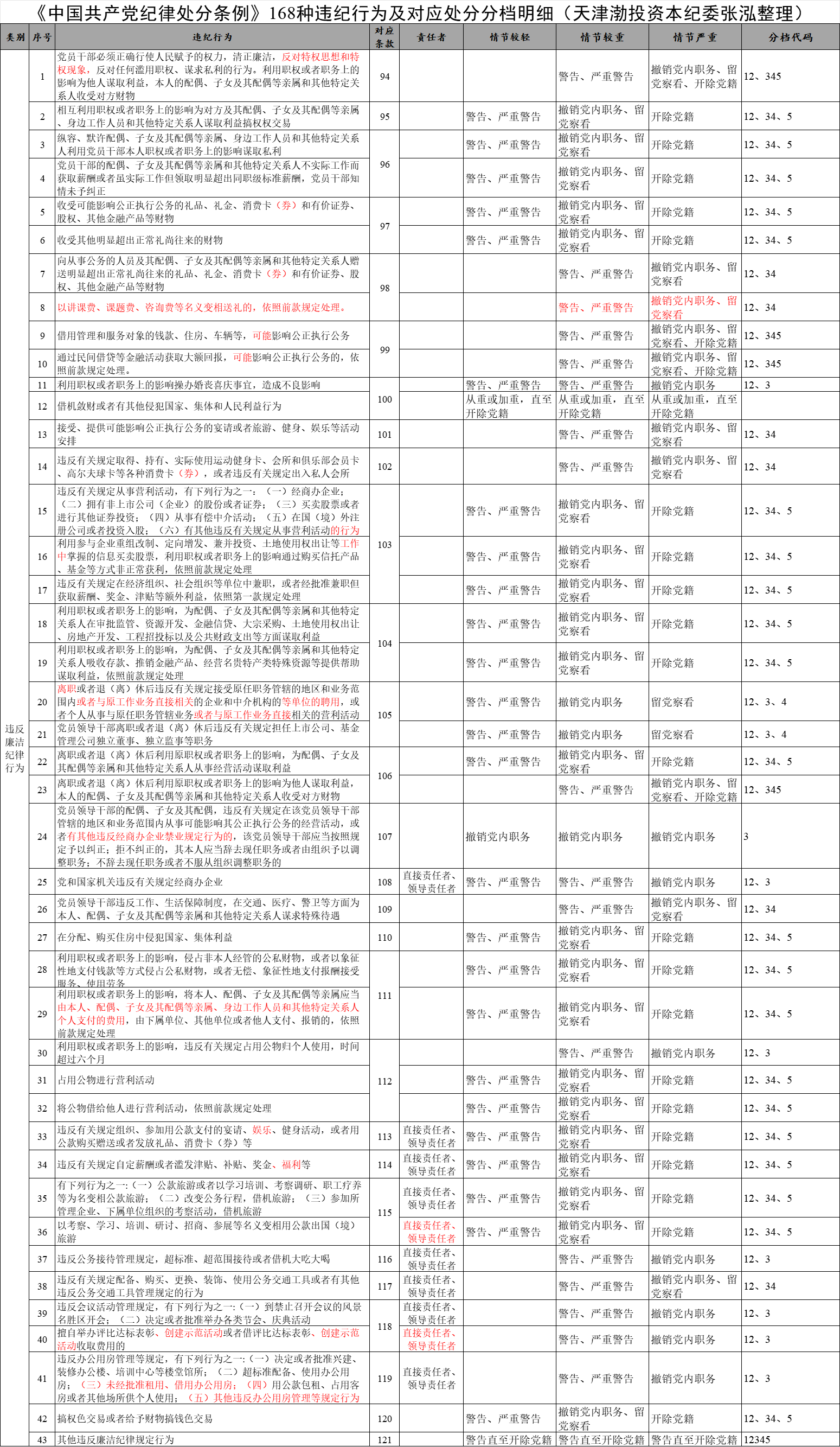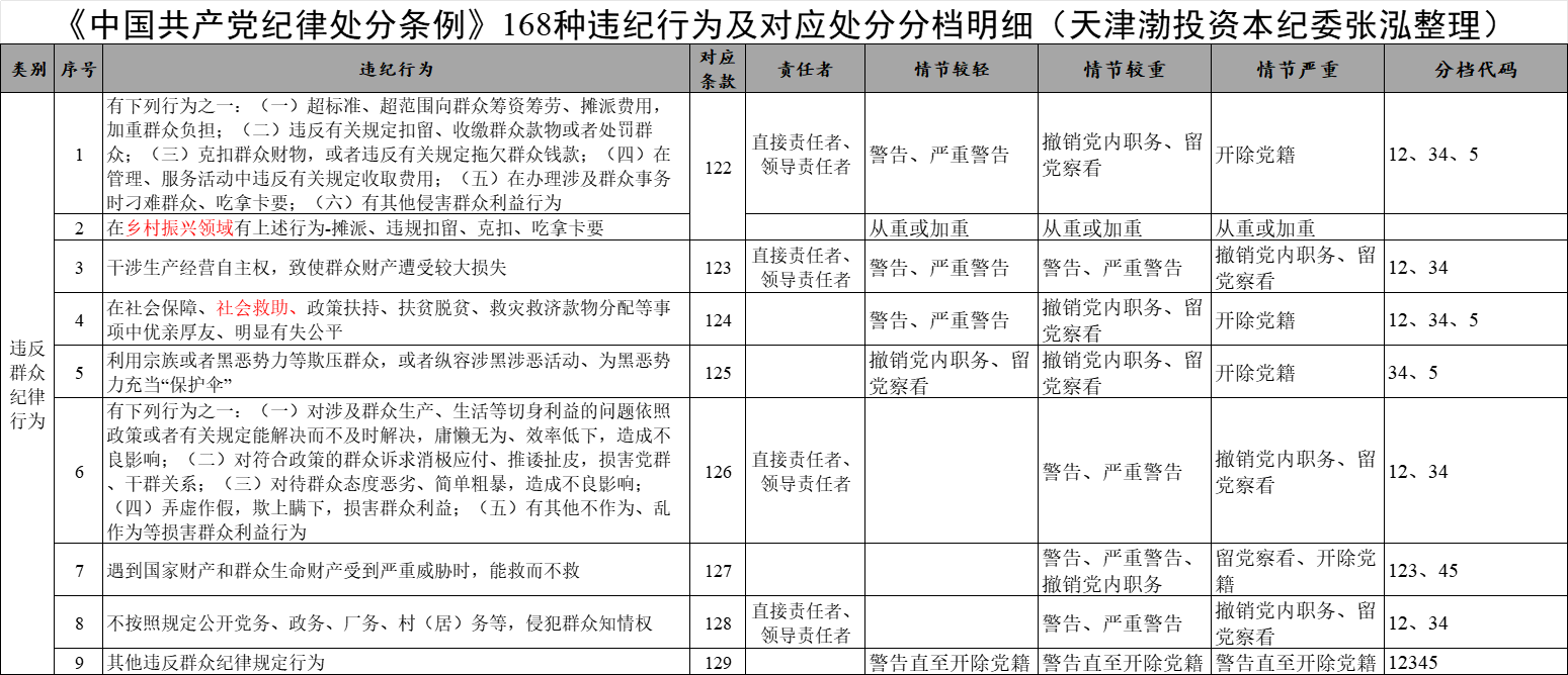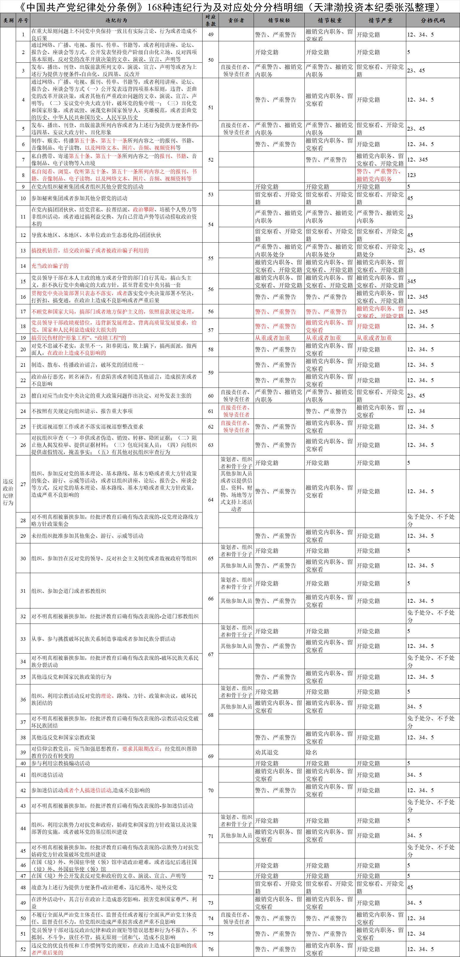 《中國共產(chǎn)黨紀律處分條例》168種違紀行為及對應(yīng)處分分檔明細