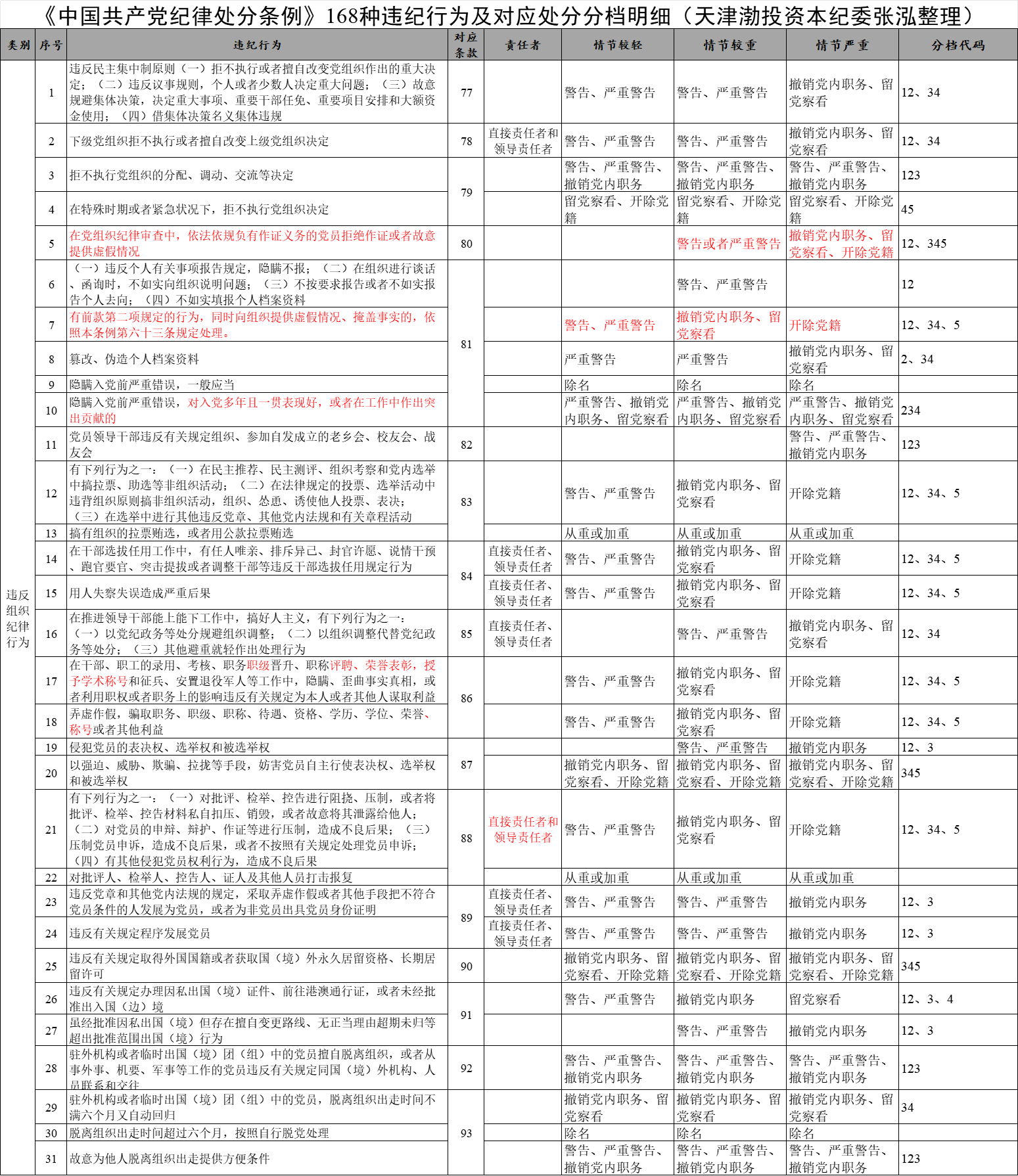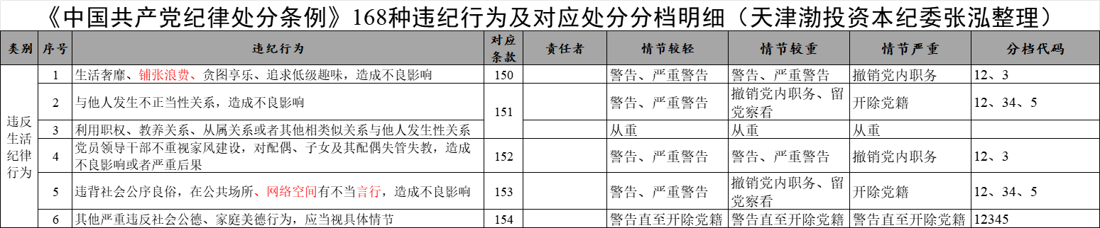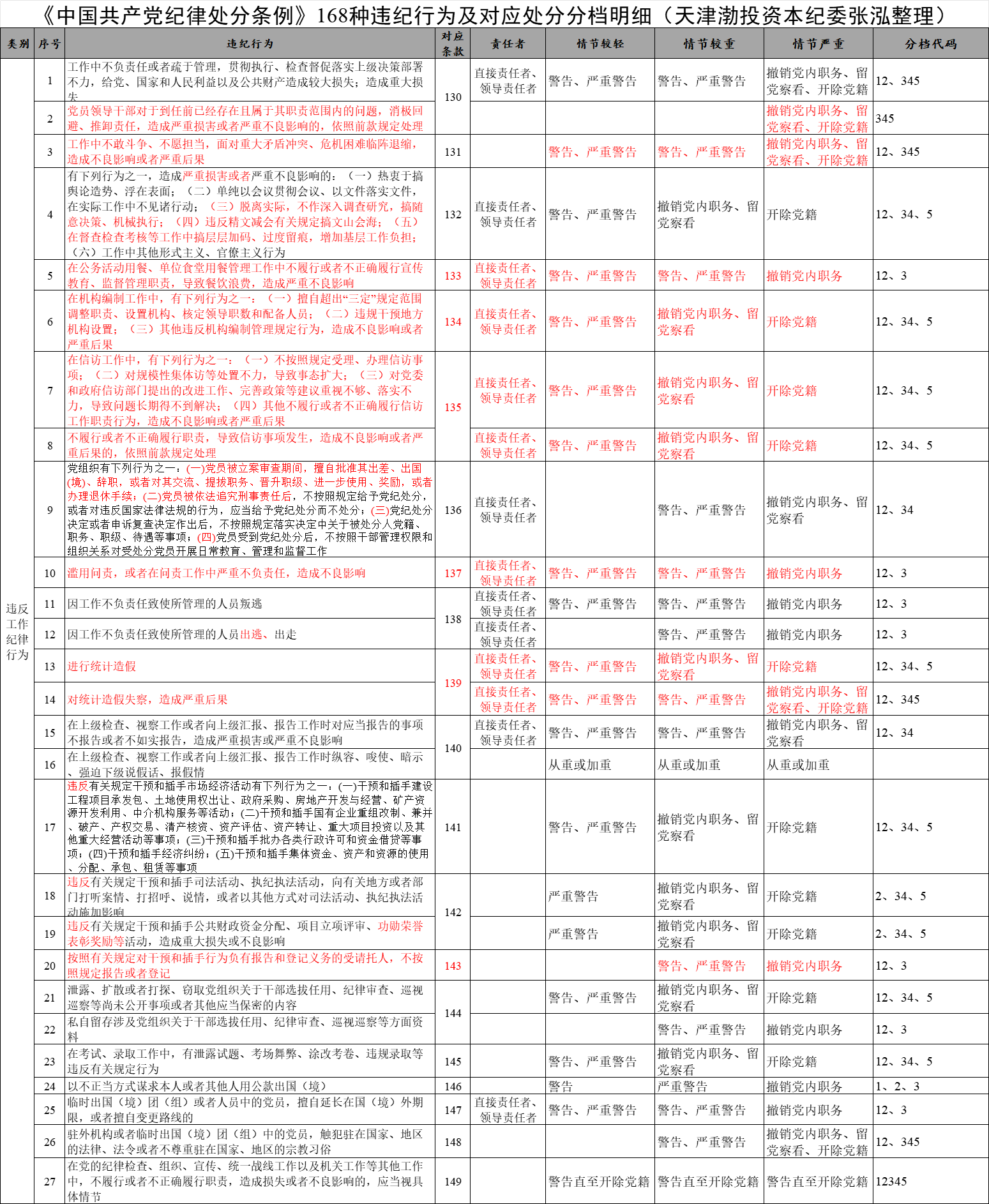 《中國共產(chǎn)黨紀律處分條例》168種違紀行為及對應(yīng)處分分檔明細