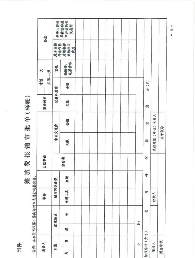 五、接待單位協助安排用餐、提供交通工具的,出差人員索取的相應的行政事業單位資金往來結算票據或稅務發票等憑證不作為報銷依據,但作為報銷附件由單位與差旅費報銷審批單(樣表附后)一并留存備查;未由接待單位協助安排用餐或提供交通工具的,出差人員無需提供。