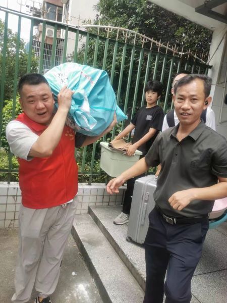 烈日當頭,酷暑難當。黨員教師們穿梭于學生宿舍和校門之間,衣服已被汗水浸濕,但黨員的擔當與責任絲毫沒有減弱,更沒有停下腳步,一趟,一趟,再一趟……有的老師運送達十余次。