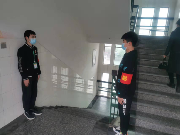 ▲團(tuán)學(xué)會(huì)志愿者在教學(xué)樓進(jìn)行防疫勸導(dǎo)