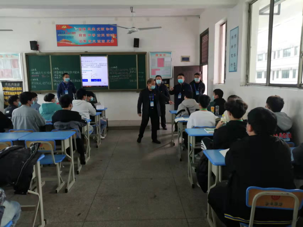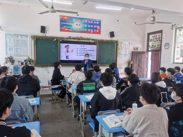 ▲黨員教師羅吒同志在19數(shù)控高技1班進(jìn)行防疫宣講