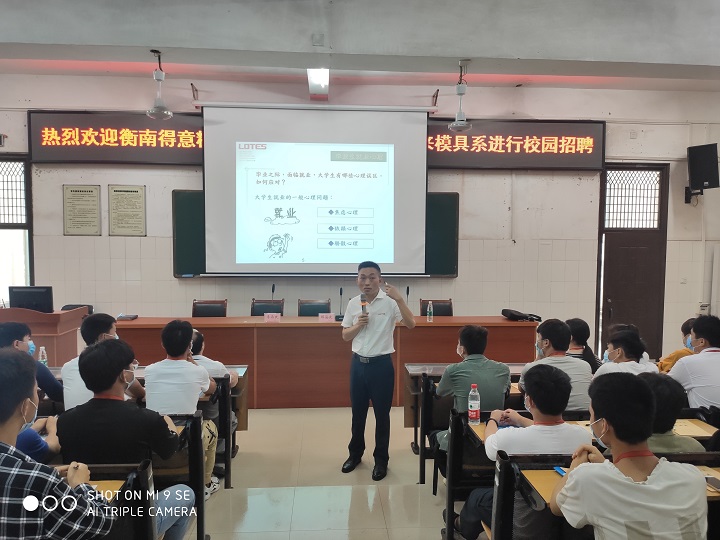 6月9日上午9時,模具設計與制造系與衡南得意精密電子工業有限公司在第一教學樓東頭一樓多媒體教室共同舉行2021屆畢業生招聘大會。出席本次大會的有衡南得意企業公司的加工部鄒海波副理、管理課課長向華、加工部李再民課長、模具系黨總支書記張國華以及學保科長曾勝云和優秀實習生代表李泓材。