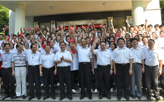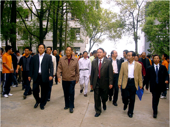 時任省委常委、常務副省長陳肈雄、長沙市人民政府市長、時任省發改委主任胡衡華來學院視察并合影