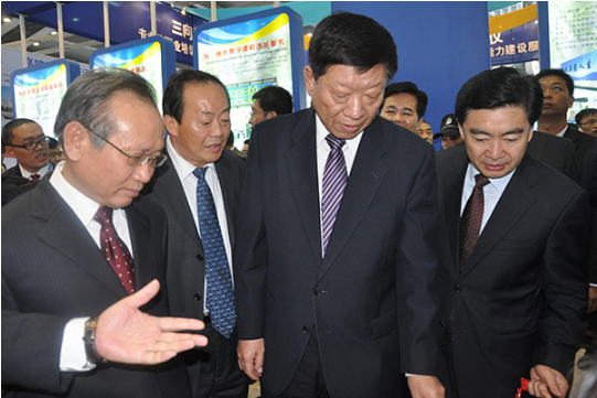 時任中組部副部長、人力資源和社會保障部部長尹蔚民(中),時任廣東省委常委、深圳市委書記王榮(右一)