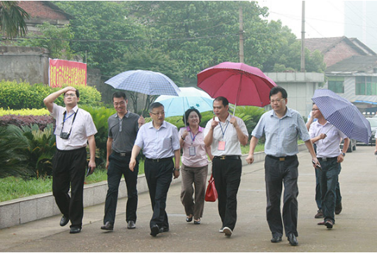 時任衡陽市委副書記鄧群策(前右一)、副市長胡水龍(左二)、副市長劉正興(左一)來院考察