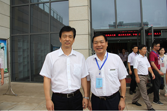 2015年湖南省技能人才培養校企合作對接會期間,時任副省長蔡振紅與我院黨委書記何東球合影