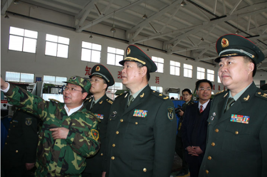 時任學院黨委書記周險峰(左一)的陪同下視察我院士官基地建設情況