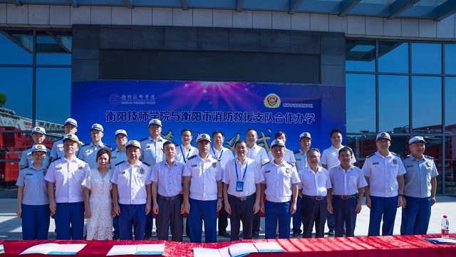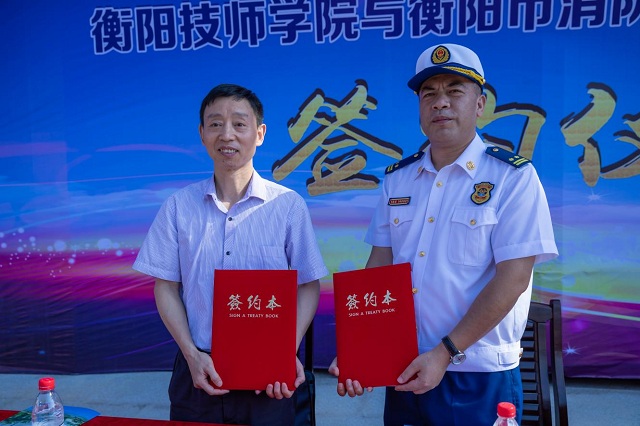 衡陽市消防救援支隊黨委班子成員,衡陽技師學院黨委班子成員,市消防指戰員代表,學院相關部門負責人及師生代表等參加簽約儀式。