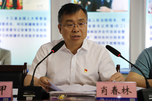 黨委書記肖春林領學《習近平同志在黨的二十屆二中全會上的報告和講話》。黨委副書記陳干甲傳達學習習近平總書記關于加強和改進民族工作的重要思想研討會會議精神。