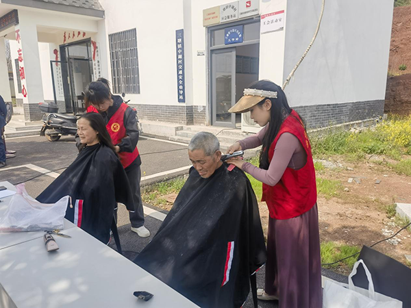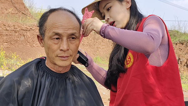 現場設有愛心義剪、電器維修、美化環境等多個服務點,前來的居民絡繹不絕,志愿者們忙得不亦樂乎。義剪志愿者邊理發邊詢問老人的意見,“兩邊修剪剪短,頭頂修齊整......”在志愿者嫻熟的手法下,一個個干凈利落的發型便成型了。