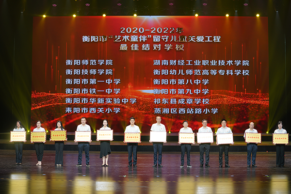 6月1日,2023年衡陽市“慶六一”暨“藝術(shù)童伴”留守兒童關(guān)愛工程主題展演活動在市文化藝術(shù)中心舉行。學(xué)院榮獲2020-2022年衡陽市“藝術(shù)童伴”留守兒童關(guān)愛工程“最佳結(jié)對學(xué)校”稱號。