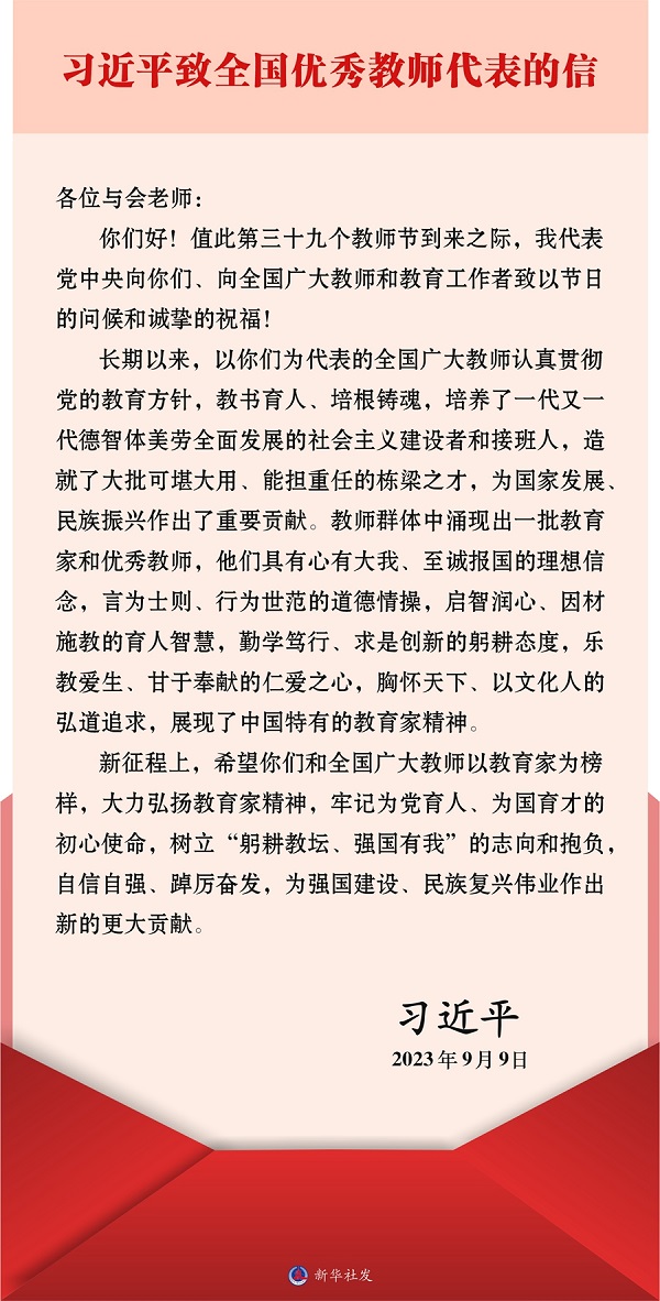 習(xí)近平致全國優(yōu)秀教師代表的信