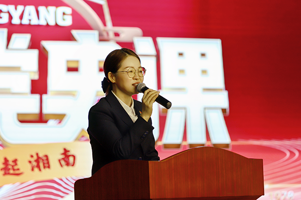 在《星火起湘南》音樂黨史課上,衡陽市委黨史研究室四級調研員廖建萍以史串歌、以歌敘史,將一首首振奮人心的經典歌曲穿插在黨課中,讓大家沉浸式感受到一個個紅色故事帶給心靈的巨大震撼。全場大合唱《沒有共產黨就沒有新中國》將音樂黨史課推向高潮。