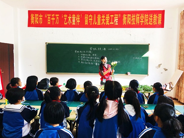 據(jù)了解,南岳區(qū)金月完小作為此項(xiàng)關(guān)愛工程的第一批市級(jí)示范點(diǎn),衡陽(yáng)技師學(xué)院與之結(jié)對(duì)后,將成立3支“衡陽(yáng)群眾”義務(wù)支教服務(wù)隊(duì),每周開展特色藝術(shù)項(xiàng)目“衡陽(yáng)群眾”義務(wù)支教活動(dòng),并常態(tài)化開展學(xué)生社團(tuán)校外藝術(shù)實(shí)踐活動(dòng)。同時(shí),衡陽(yáng)技師學(xué)院將邀請(qǐng)金月完小的留守兒童參與學(xué)院的各類活動(dòng),幫助金月完小文化藝術(shù)體育類教師提升技能。