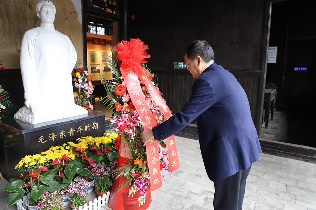 在湘南學(xué)聯(lián)紀(jì)念館,何東球向毛澤東同志雕像敬獻(xiàn)花籃并整理緞帶。全體黨員干部面對鮮艷的黨旗,莊嚴(yán)地重溫了入黨誓詞。隨后,學(xué)員們認(rèn)真參觀了學(xué)聯(lián)陳列室、毛澤東臥室、會議室和夏明翰陳列室等,重溫著革命歷史。現(xiàn)場還聆聽了紅色故事,觀看了《中國共產(chǎn)黨百年述職報告》視頻,讓我們深刻認(rèn)識到中國共產(chǎn)黨100年來矢志不渝、踐行初心、篳路藍(lán)縷、艱苦奮斗的輝煌歷史。