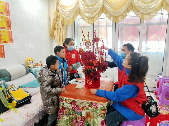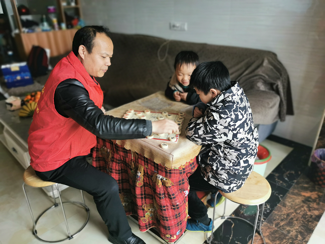 活動中,身穿“衡陽群眾”紅馬甲的支教隊老師們分組來到留守兒童們家中,與孩子們一起制作年宵花,陪伴孩子們下象棋,打乒乓球、羽毛球,給孩子們講授防疫小知識,并送去防疫物品。溫馨的“新年禮物”,結對幫扶陪伴,讓孩子們的春節不孤單。