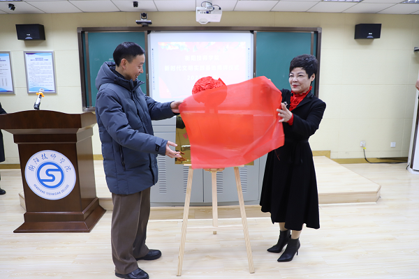 本網訊 2022年1月10日下午,衡陽技師學院在實訓中心二樓舉行“衡陽市新時代文明實踐基地”揭牌儀式。市委宣傳部副部長、市文明辦主任譚春蘭和學院院長邱家才共同為“新時代文明實踐基地”揭牌,黨委副書記劉金春主持儀式。市委宣傳部文明二科科長王曙琦、文明三科科長楊冰、市委宣傳部新時代文明實踐中心干部劉維,學院黨委委員、宣傳統戰部部長肖芳參加。