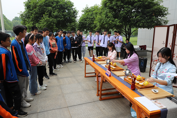 “今天我們選泡的是紅茶,其條索緊細(xì),色澤烏潤,香氣香甜迷人。沖泡之前,用清清的泉水,洗凈世俗的煩惱,此刻讓我們共賞茶藝溫馨。”活動現(xiàn)場,經(jīng)濟(jì)貿(mào)易系茶藝協(xié)會負(fù)責(zé)老師胡以婷從佳茗酬賓、冰清玉潔、佳人入宮、潤澤香茗、懸壺高沖(泡茶)、點(diǎn)水留香(分茶)、香茗酬賓(奉茶)、細(xì)啜滿品(品茶)、收杯謝客等茶藝程序?yàn)榇蠹医榻B體現(xiàn)中國傳統(tǒng)文化的紅茶茶藝。