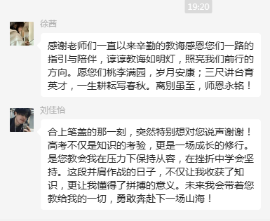 此刻,我想引用鄧玉瑾同學微信中的一句話“良師扶我青云志,我必踏雪至山巔”!今天你們以學校為榮,明天學校將以你們為傲!祝你們前程似錦!越走越輝煌!