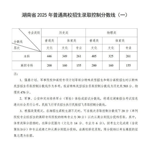 重磅!湖南省2025年普通高校(含對口升學)招生各批次錄取控制分數線公布